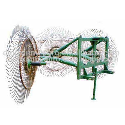 This series of hay rake is mounted on the 4wheel tractor,  the material of tine is 65Mn spring steel to keep durable. this machine has simple structure, convenient operation and reliable use, less failure and high efficiency.  operation quality Maintenance is simple, dynamic performance is good. Both can hug grass, and ted the grasses. This hay rake could be used together with our lawn mower, it can rake the three grass swath which cut to be a even one that is helpful for the subsequent bundling work.