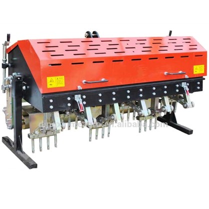 By punching vertically, the machine can protect the lawn from being destroyed;Punching pins are driven by belts rather than chains to minimize noise and avoid being broken by hard items, such as stones;Drawn by tractor, the machine can move and turn more quickly and flexibly;The framework is strong and durable,punching head independent connection,stick to the gender is good, the mechanical structure simple, convenient maintenance; Open Machine cover can maintenance,Intuitive and convenient.Lawn drilling machine, lawn by puncturing eliminate soil compaction, remove grass carpet layer, so that the lawn transparent, is conducive to water, fertilizer, medicine, etc. into the soil to reach the roots. Perforated section can also be cut off roots, promote deep roots into the soil development and enhance turf drought, resistance to pests and diseases, so that the healthy growth of the lawn.