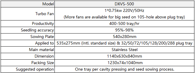 Dingxin Vacuum Plug Tray Precision Seeder is widely used for sowing vegetable/flower/tobacco/rice seeds on international size 535*275mm plug tray.